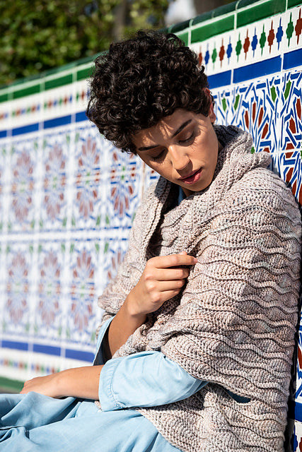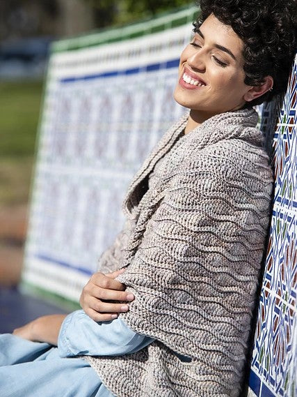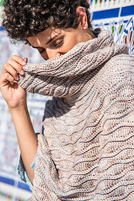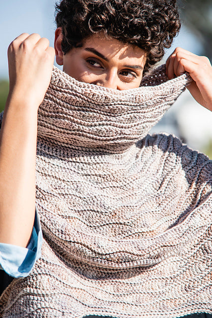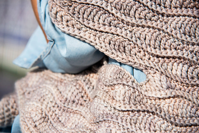 Using Malabrigo Rios, you can crochet this super comfy textured poncho. Sample uses the colorway Whole Grain, one of the beautiful new Rios colors from malabrigo.