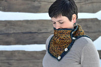 One size; finished cowl measures 22” (56 cm) long by 10” (25 cm) tall (unbuttoned, flat)