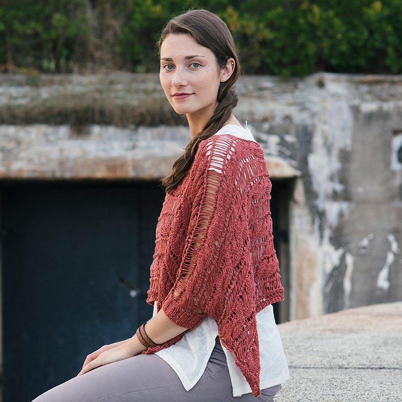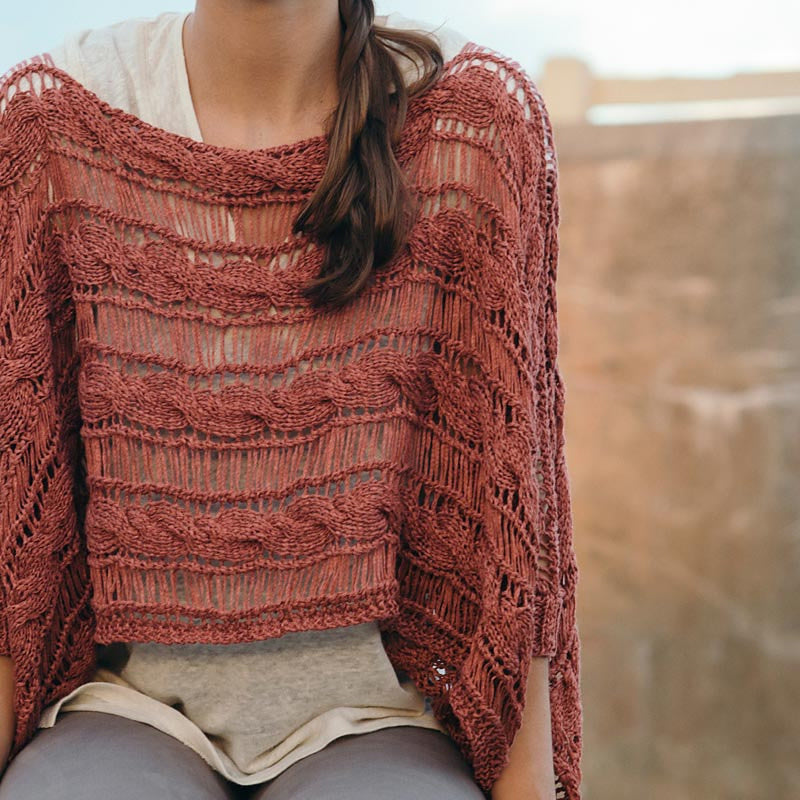 An easy poncho style, Dormer’s basic rectangle construction allows you to concentrate on the dropped stitch and cable patterning—an irresistible effect in a ribbon linen yarn like Kestrel. Convert it to a pullover by simply seaming up the sides; Norah also suggests working more rows on the cuffs if you desire longer, fitted sleeves. We love pieces that allow you the freedom to really make it your own.