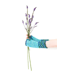 A cute pair of mitts with daisy stitch edges worked in one or two colours. These mitts have been designed to work well in the variegated colours of Fyberspates Faery Wings, but they’d look great in two semi solid shades as well.