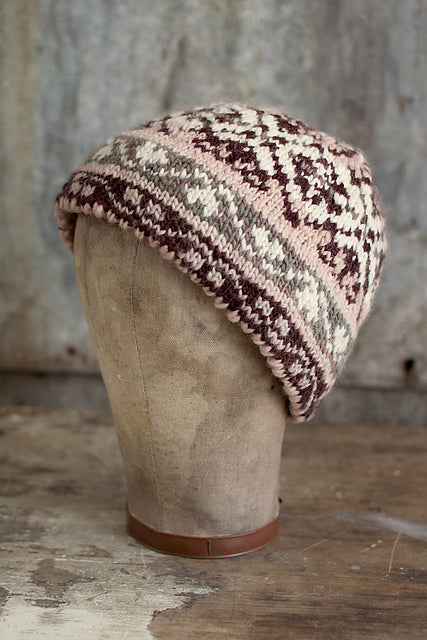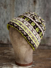 These two sets of hats and mittens are worked from seven colors - two hats and four mittens from seven skeins of yarn. The Copo de Nieve (snowflake) design has classic Fair Isle OXO motifs separated by smaller border patterns. The Ramillete (flower bouquet) design is based on a traditional Scandinavian pattern. Both designs are worked in the round using only two colors per round and have knitted hems with picot edging.