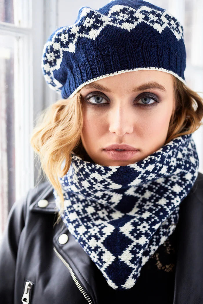 The Fair Isle Cowl is a knit cowl pattern made with light weight yarn that has a skill level of easy.