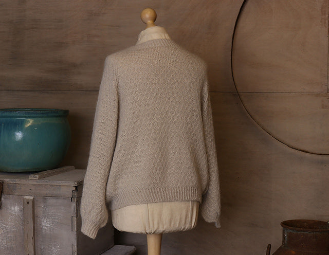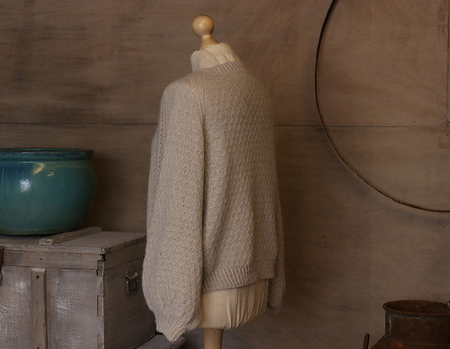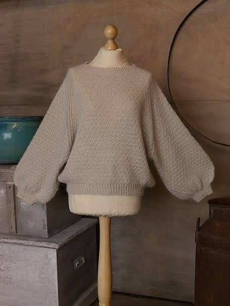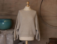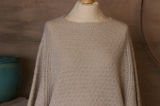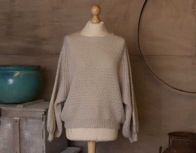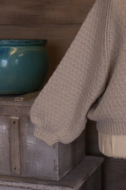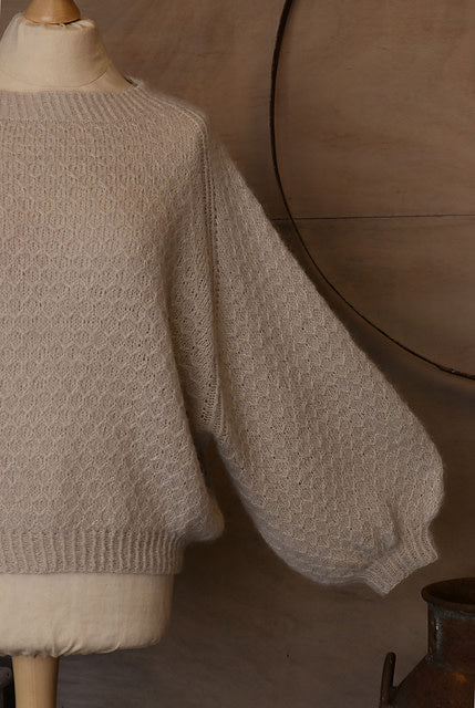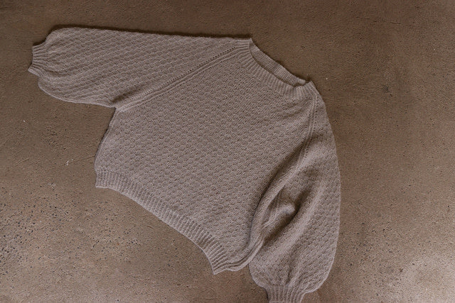 Farra is a slouchy raglan sweater with an oversized fit and voluminous balloon sleeves. Knitted seamlessly from the top down, it features a dynamic honeycomb stitch that pops beautifully in brushed The Fibre Company Cirro. Elegant and simple, this comfy pullover, designed by Emma Ducher, is perfect for lazy days when you still want to feel dressed up.