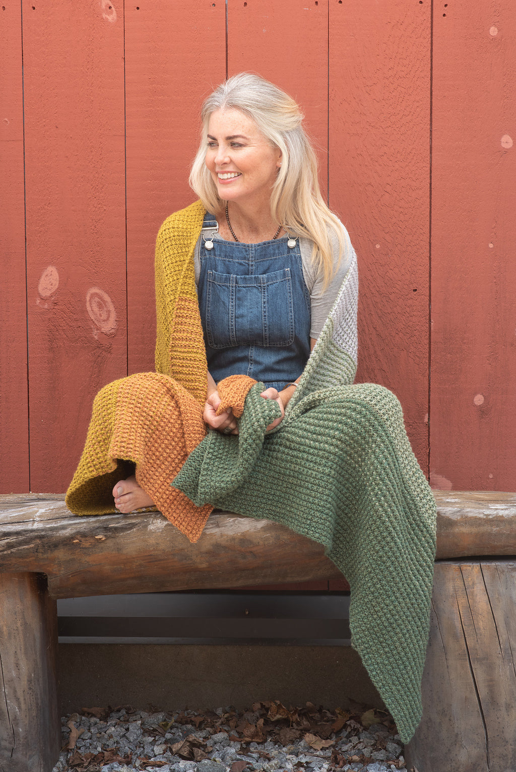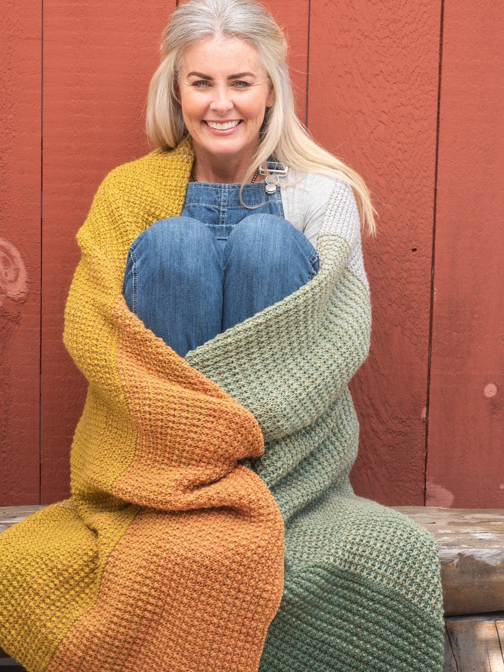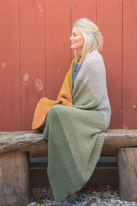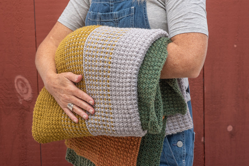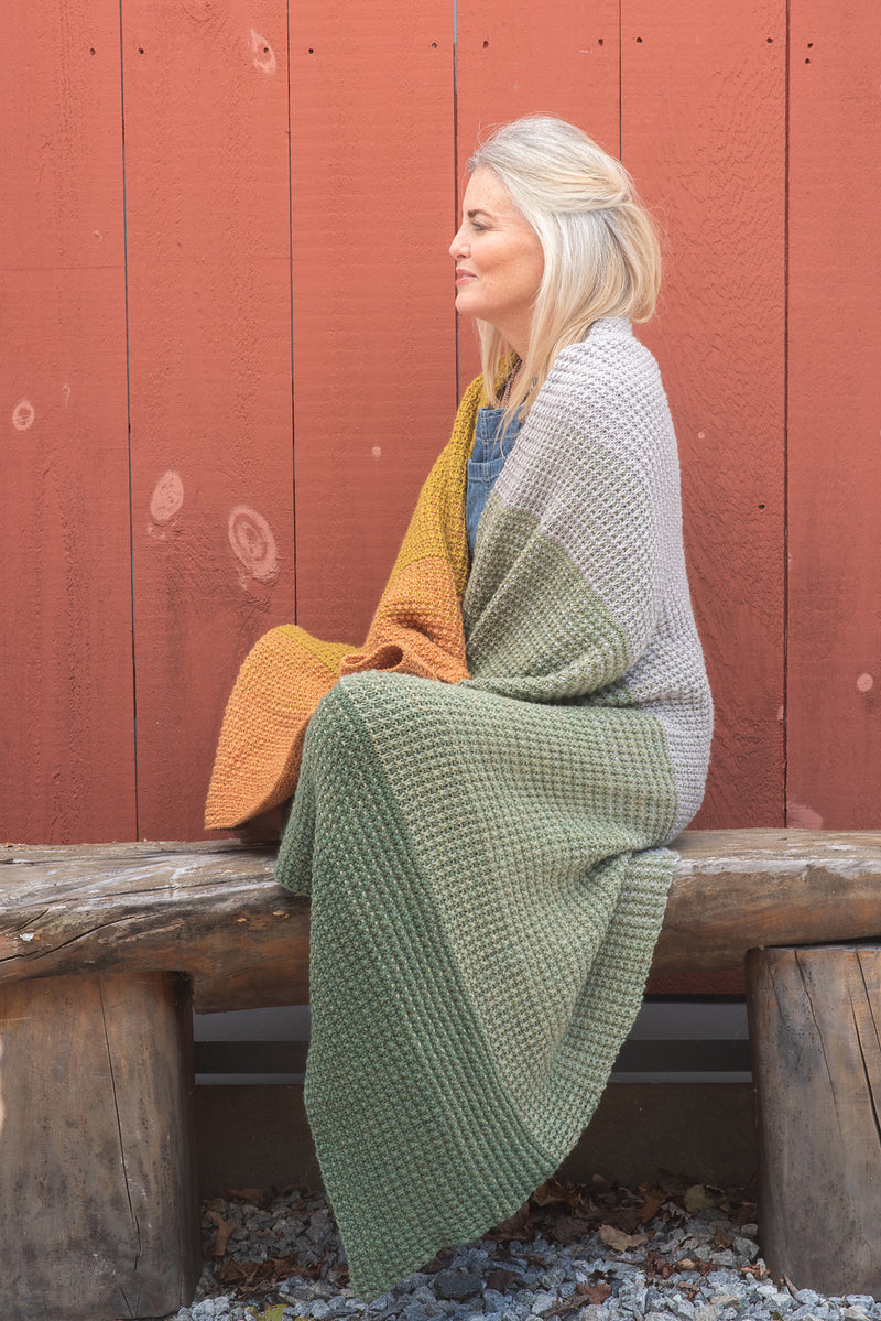Berroco Lanas: 2 balls each of #95127 Leaf (C1) and #95109 Golden (C5); 3 balls each of #95108 Spring Green (C2), #9516 Dove (C3), and #95115 Lime Light (C4)