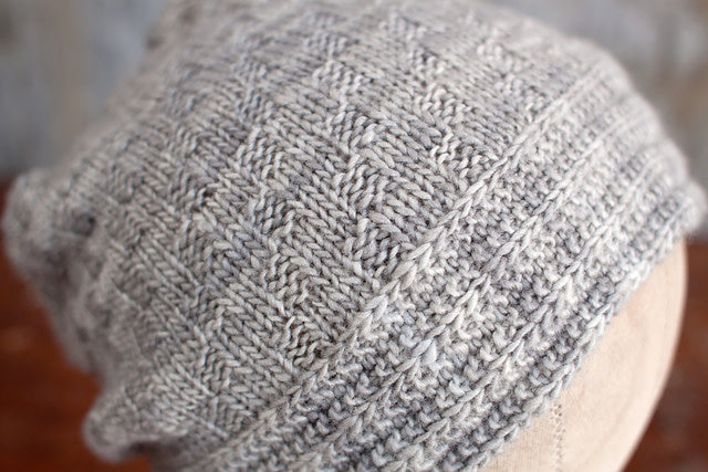 15 sts = 2” and 48 rows = 4” in Brim Pattern. (Note: For the Brim Pattern, the row gauge is more important than the st gauge. Because of the slipped sts worked every other row, the column of knit sts will appear to be only 24 rows.)