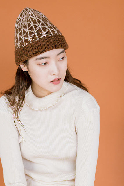 Worked in the round from the brim to the crown. Color work is worked from the chart or written pattern in St st (knit every round).
