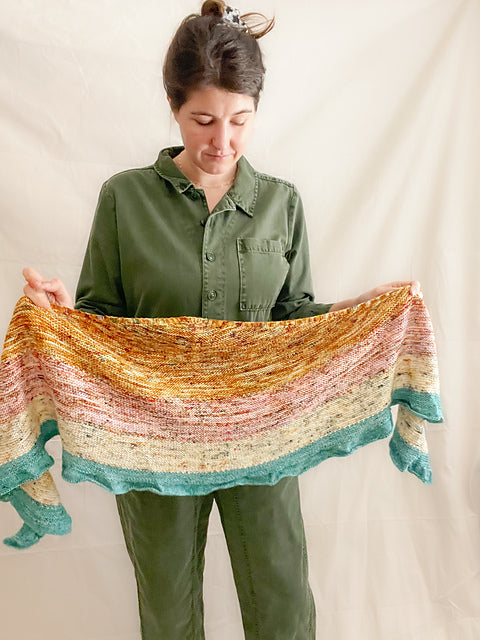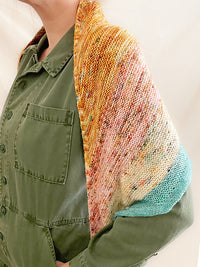 Starting at center at upper edge, worked back and forth on circular needle to make room for increasing number of stitches.