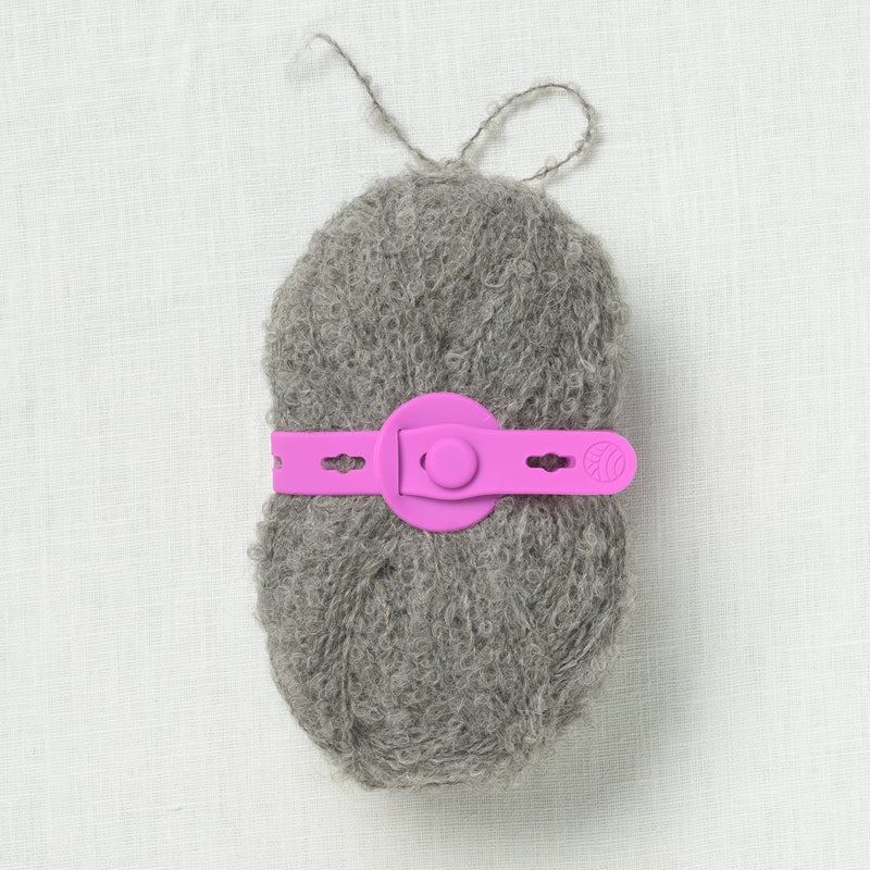 Secure yarn balls to keep them from coming apart. Crafted from smooth, durable silicone, the ingenious yarn belt loops around yarn balls & cakes to keep them from unraveling & tangling. A simple button slips through eyelets along the strap. Belt circumference adjusts from approx. 3” to 11.”