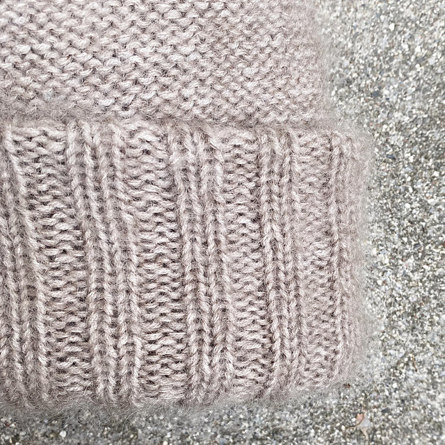 Frederiksberg Beanie is a warm and cozy hat that is fully reversible – it can be worn with either the right side or wrong side facing, giving you two hats for the price of one! The hat is double-layered, making it extra warm, and the two strands of Soft Silk Mohair add softness and coziness. It is worked in one piece from the top of the crown on the outer layer to the top of the crown on the inner layer using 2 strands of Soft Silk Mohair + 1 strand of Merino, Cotton Merino or Pure Silk held together throughout. Please note that whenever only one number is given in the instructions, this number refers to all sizes