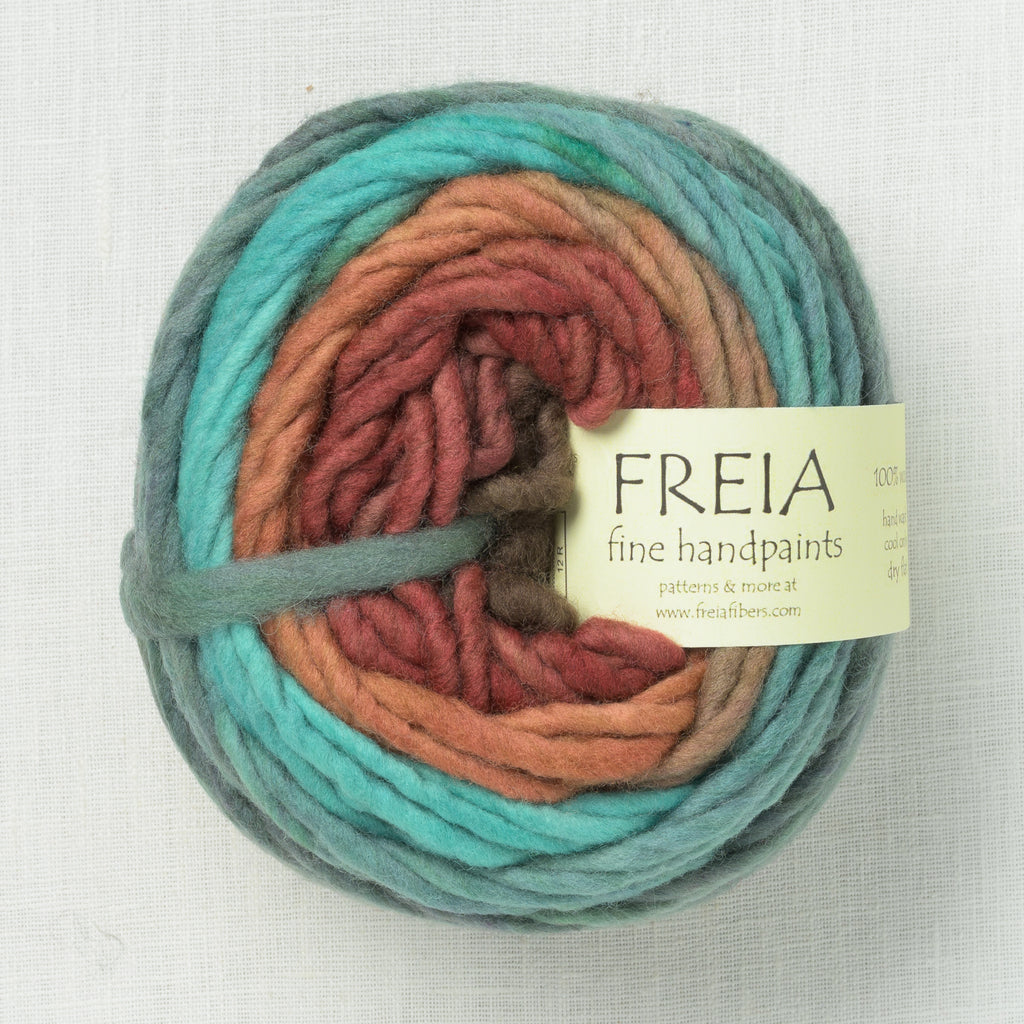 Bring super bulky accessories to life with a color gradient! Hand-painted Freia Super Bulky is a soft, single-ply yarn spun with 100% wool. Warm & cozy, the yarn knits up quickly for a satisfying weekend or evening project. It is also wonderful for knit gifts.
