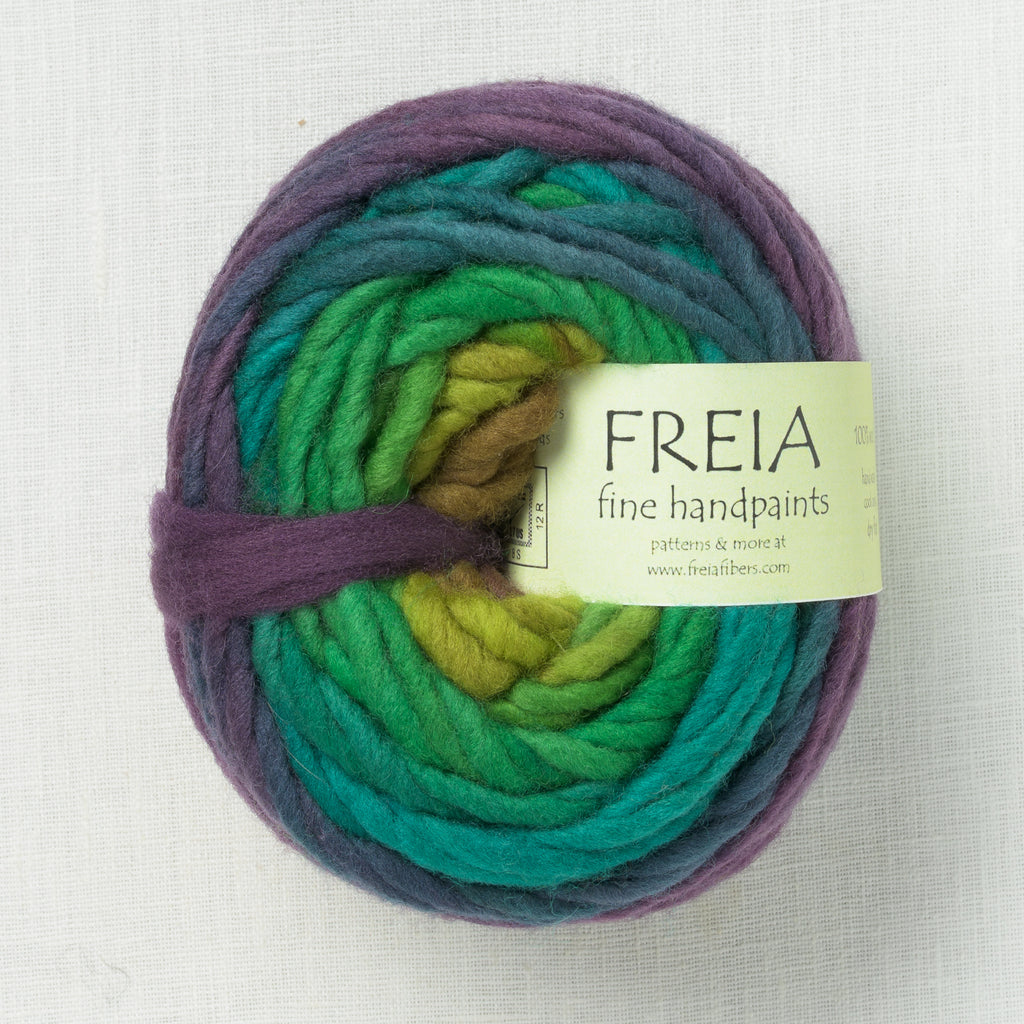 Bring super bulky accessories to life with a color gradient! Hand-painted Freia Super Bulky is a soft, single-ply yarn spun with 100% wool. Warm & cozy, the yarn knits up quickly for a satisfying weekend or evening project. It is also wonderful for knit gifts.