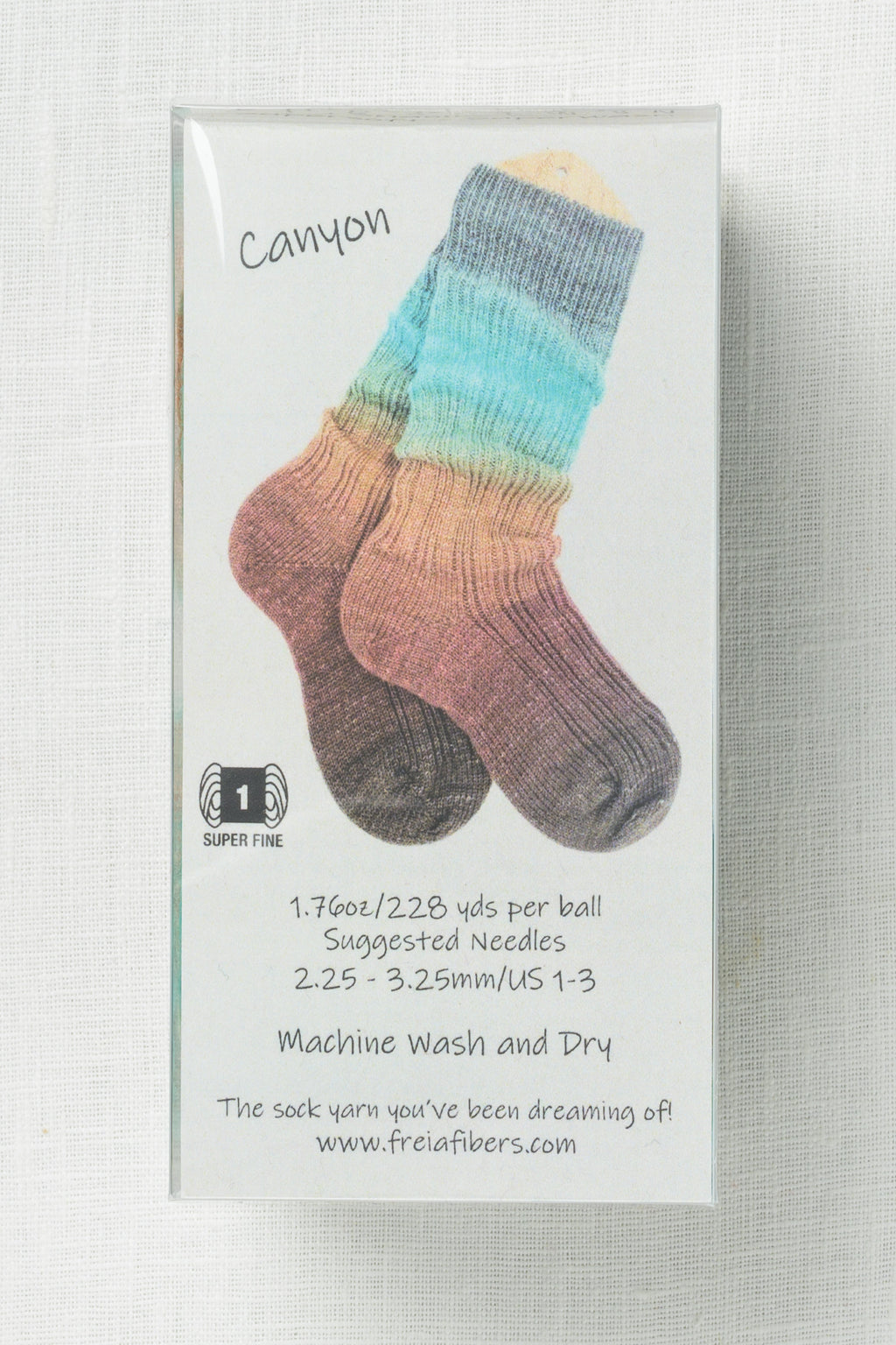 Knit two identical socks with these stunning hand-dyed sock sets by Freia. Each set includes two individual balls of Freia Superwash Fingering Sock yarn, as well as a QR code for a free basic sock pattern (SoleMate Socks by Tina Whitmore).