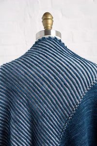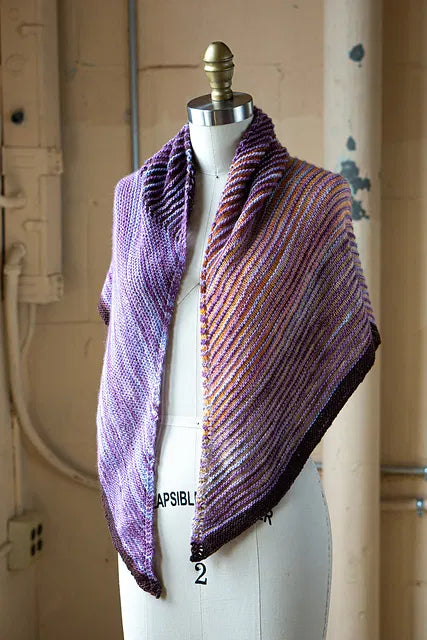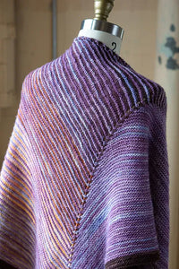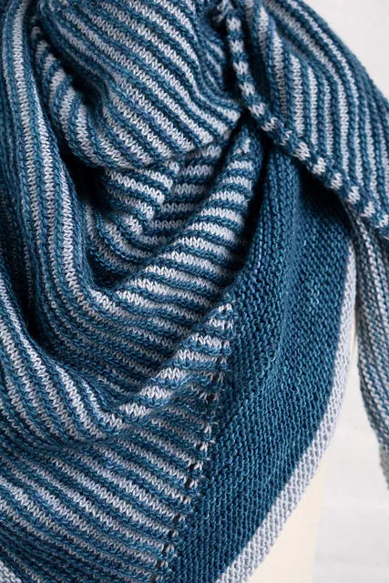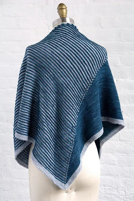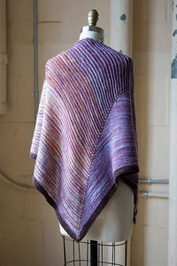 An unexpected combination of stripes and short rows gives the shawl an asymmetric triangular shape. Gather two skeins of Fino for a delightful and engaging shawl project!