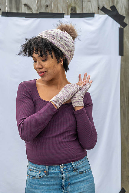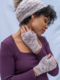 A delightful hat and mitt set knitted in a sweet knit-purl textured pattern.