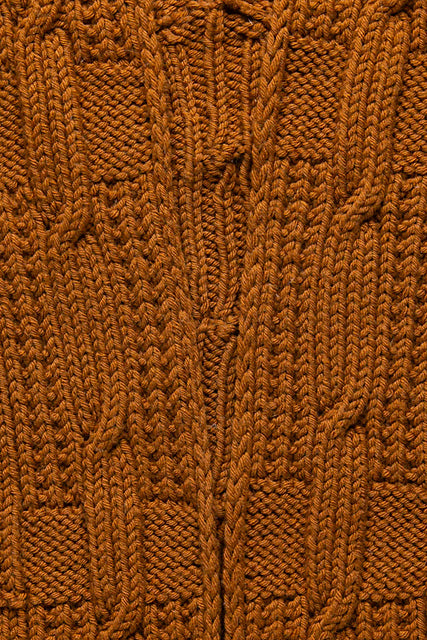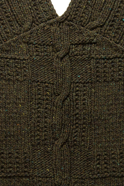 - The back is worked first from the bottom up. Both fronts are picked up along the sloped edges of the upper back and worked simultaneously from the top down. The back and fronts are joined to work the lower ribbing in a single piece.