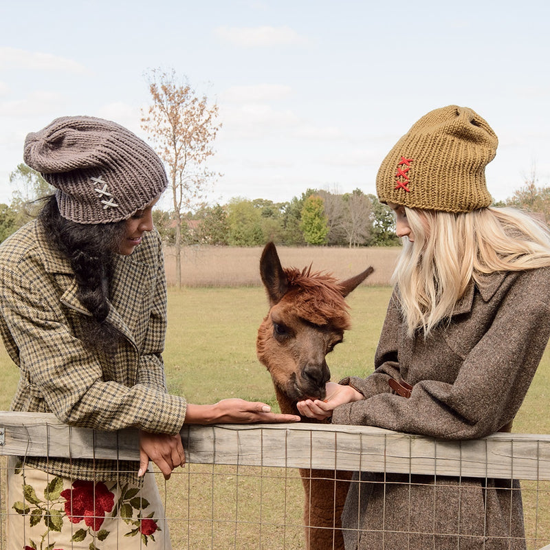 This stylish slouch hat in certified Organic Cotton will be a grab and go favorite for year-round wear. 2 hanks of Organic Cotton held double for the hat and small of accent color for graphic design.