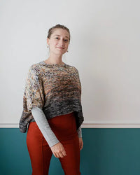 The Gradiente Poncho is knit holding 3 strands of Manos del Uruguay’s laceweight Marina at a time for a relaxed gauge on larger needles - the resulting fabric has a smooth color transition and a drapey feel.