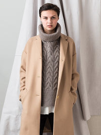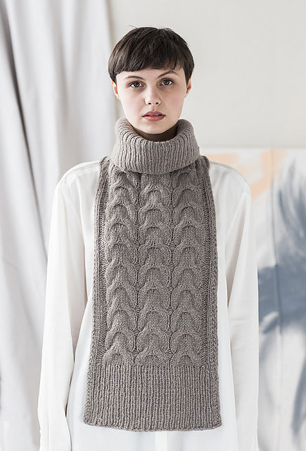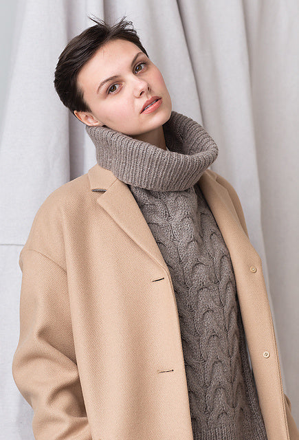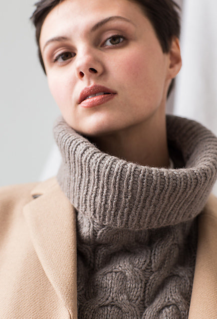Neck is worked in the round from the top down and back neck is bound off to work flat for front panel.