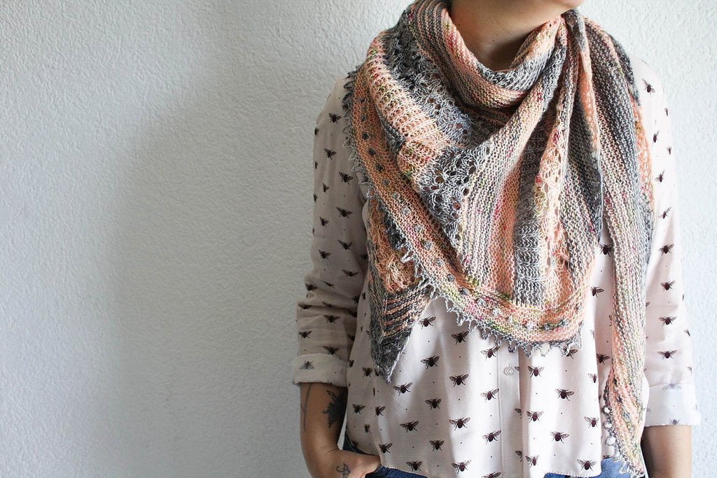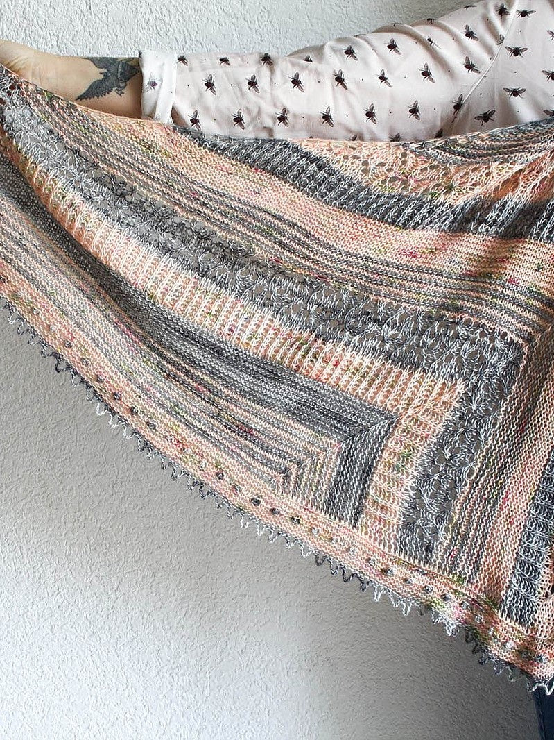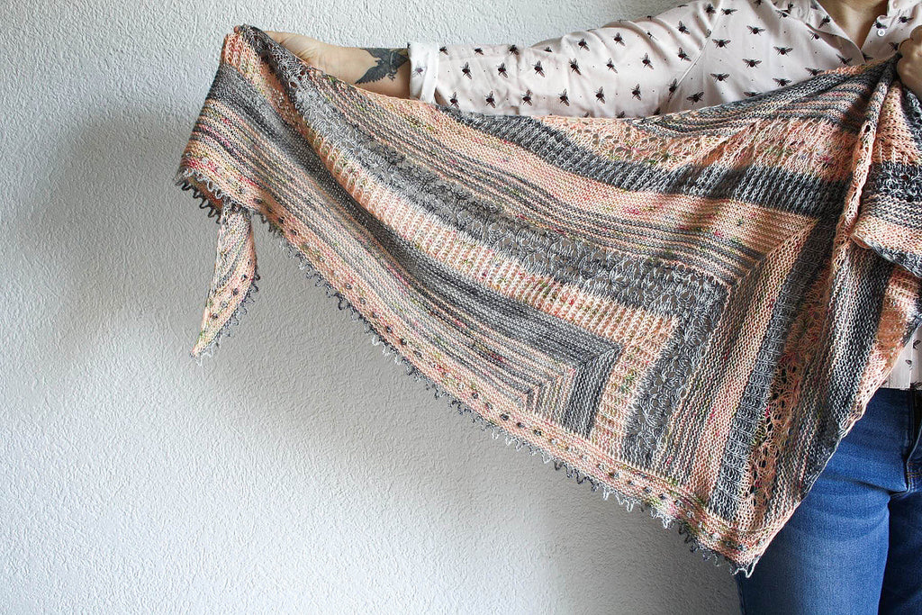 “Happy Place” is my third special birthday shawl and for this pattern I wanted something fun to knit, full of cheerfulness that inspires the joy of living. Worked in one piece, with a succession of small sections that gives a nice rhythm to keep the knitting varied and pleasant. A little lace, some English ribs, some garter stitch (of course, always some garter stitch) and a bit of fantasy with the lovely “folk” accent of the edging. That’s all you need to feel the joy of my happy place ;)