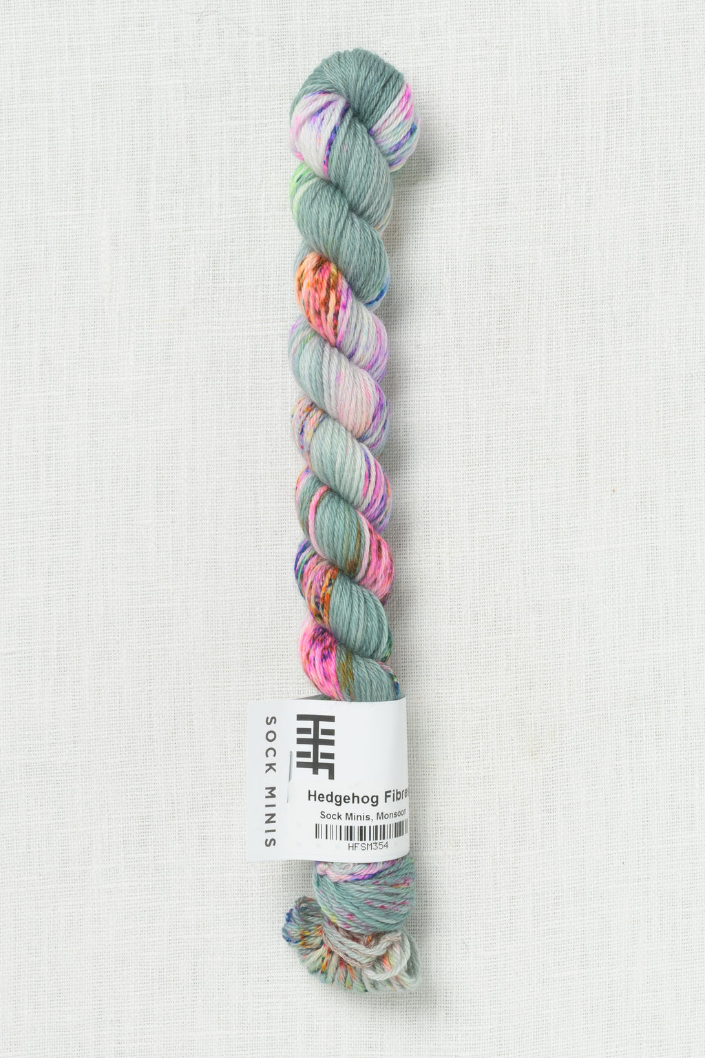 Sometimes you just need a bit of color. Sock Minis are adorable little 87 yard skeins of Hedgehog Fibres popular sock base. Ideal for striping accessories, socks & multi-colored shawls/wraps. Hand-dyed in County Cork, Ireland, each unique Hedgehog Fibre colorway is inspired by company founder, Beata Jezek’s, personal style. The signature colorways range from dark & moody to fluorescent & vibrant. With an emphasis on “soft & squishy,” this luxury fingering weight yarn will knit into one of a kind socks, garments & accessories. Dream & create!