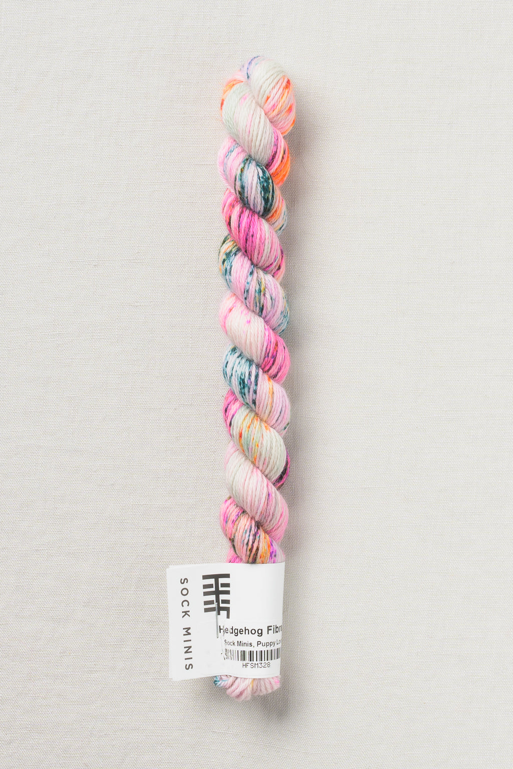 Sometimes you just need a bit of color. Sock Minis are adorable little 87 yard skeins of Hedgehog Fibres popular sock base. Ideal for striping accessories, socks & multi-colored shawls/wraps. Hand-dyed in County Cork, Ireland, each unique Hedgehog Fibre colorway is inspired by company founder, Beata Jezek’s, personal style. The signature colorways range from dark & moody to fluorescent & vibrant. With an emphasis on “soft & squishy,” this luxury fingering weight yarn will knit into one of a kind socks, garments & accessories. Dream & create!