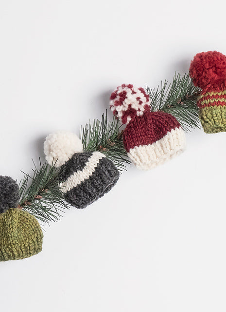 A cute mini hat with a fun pom-pom. Decorating options for this tiny project are endless. Create a cheerful holiday garland, hang as an ornament or add as a gift wrapping accessory. Knit an original creation by mixing and matching colors and patterns.