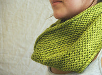 A simple slip stitch pattern cowl creates a dense waffle-like fabric for warmth and supple drape. This flexible pattern can be worked in four different sizes using just one or two skeins of yarn. Both short and longer versions are lovely viewed on both sides. This cowl is perfect for a bright pop of color and a warm hug around your neck.
