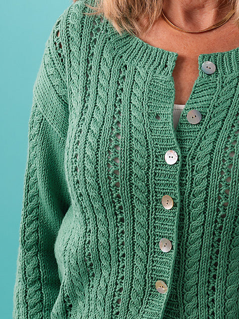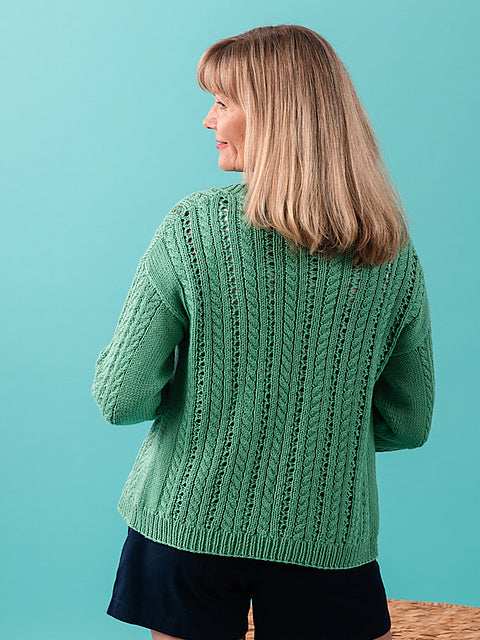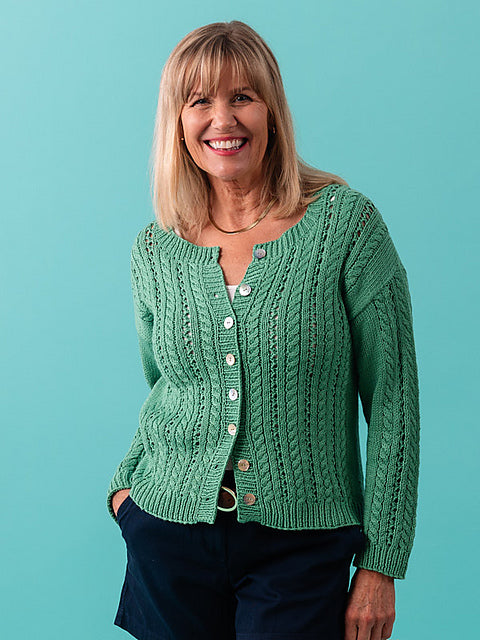 A quintessential summer cardigan with all-over cables and lace elevating its classic shape, Hunter House is high on our must-make list! Each piece is worked separately and seamed to give support to the finished sweater. Enjoy the stay-cool coverage and silky soft feel of Modern Cotton in this elegant layer!