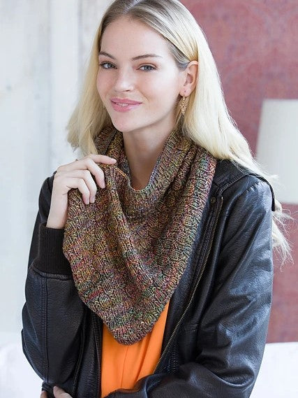 Light texture pattern stitch combines with 2 twin edge rib borders on this circular knit cowl designed to elevate your knitting and modern wearing experience above the ordinary. Pattern can be worked entirely from written or with chart.