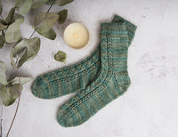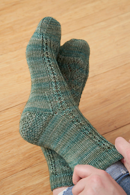 Approx foot circumference 7 (8, 9)”/18 (20.5, 23)cm, measured at the widest part of the foot