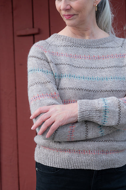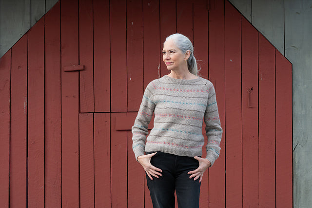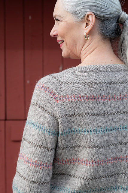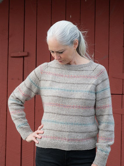 This modern colorwork pullover is knit from the top down with raglan shaping and simple stripes. Pair your favorite Color Pack with a coordinating main color to create a personalized sweater you’ll love.