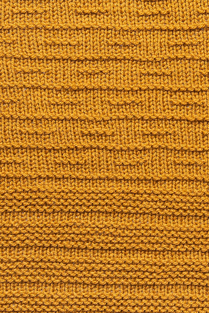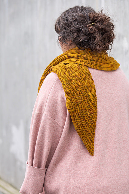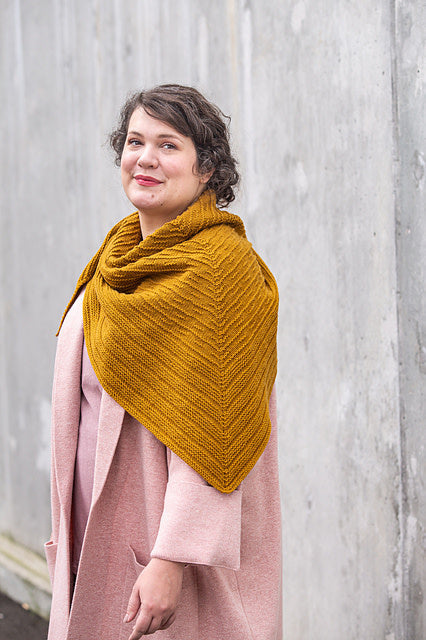 The shawl is worked in two sections — the first, a textured garter dash pattern, followed by a border section worked using garter stitch ridges. Three basic sizes have been provided within the pattern, though the shawl’s modular design allows as many or as few repeats of Section 1 and Section 2 as you like, enabling easy customization of the finished size.