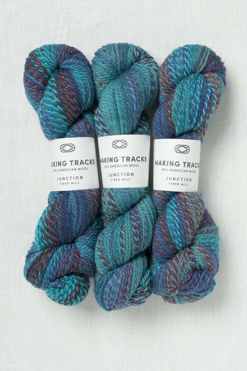 Making Tracks is a covetable blend of Fine Merino, Targhee & Corriedale wool. Ideal for garments & accessories, the yarn blooms beautifully when blocked & knits into soft, warm & lofty pieces.