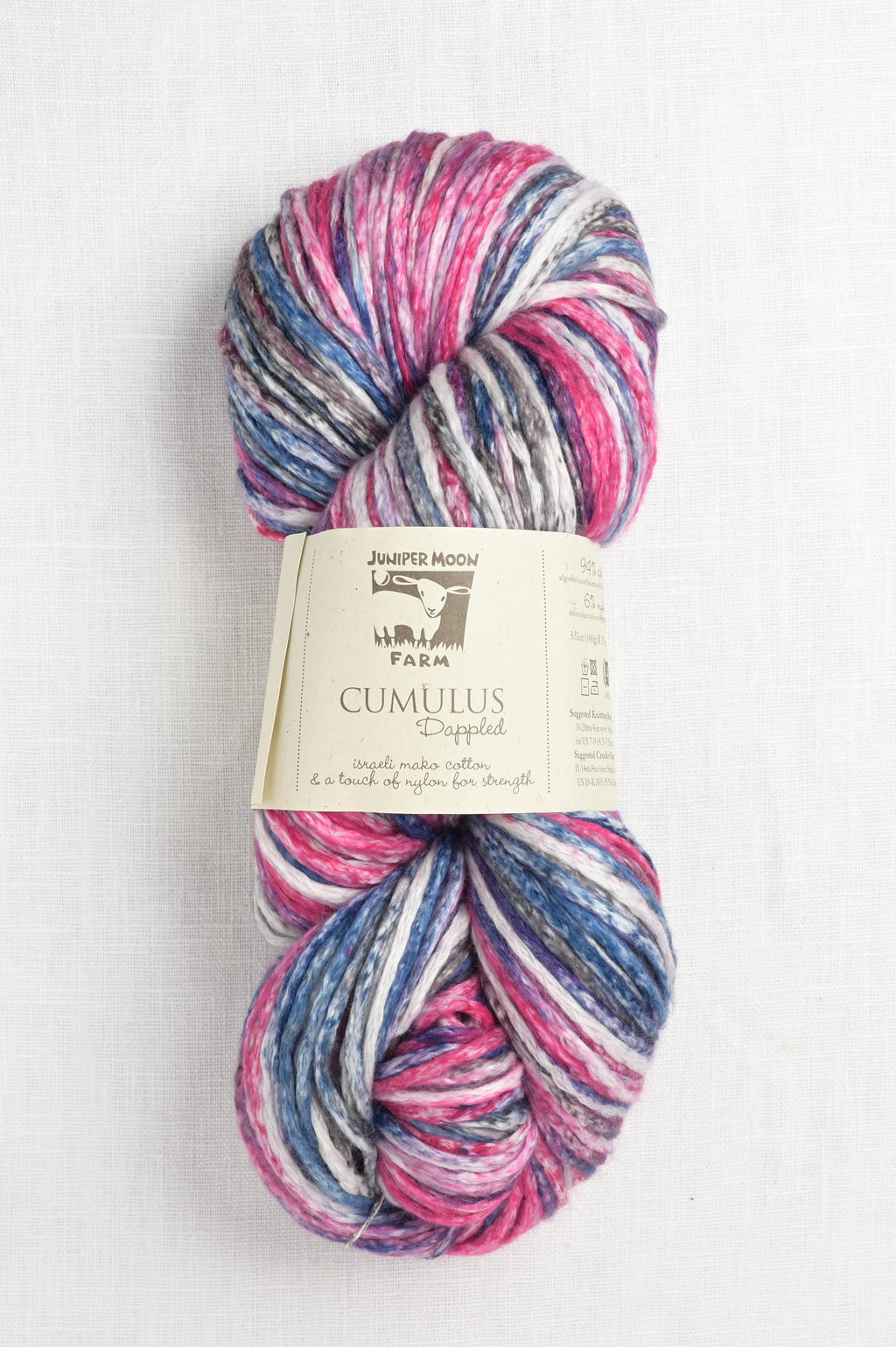 Cumulus Dappled is a velvety soft blend of brushed, Israeli Mako cotton & a touch of nylon for strength. Ideal for all season garments & accessories, the fun, dappled colorways give even the simplest stitch patterns dimension. A wonderful yarn for those with fiber sensitivities & baby knits.