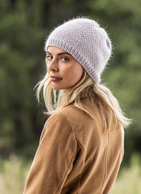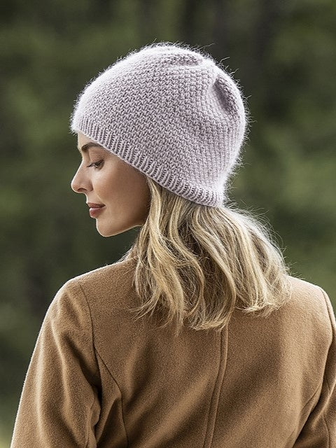 A unisex hat with beautiful texture. Using a half linen stitch that showcases the halo of the soft Suri Merino, and just one hank, this hat is lightweight, yet incredibly warm.