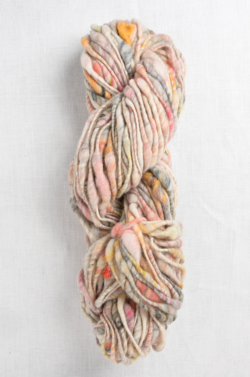 Cast Away is a soft, super bulky, hand-spun yarn that comes in a variety of confectionary hues. The thick & thin texture of this yarn makes even the simplest stitch patterns unique & interesting. The “sparkle” colors have a fun metallic glint. A wonderful yarn for spirit-lifting hats, mittens, scarves & cowls or even home items.