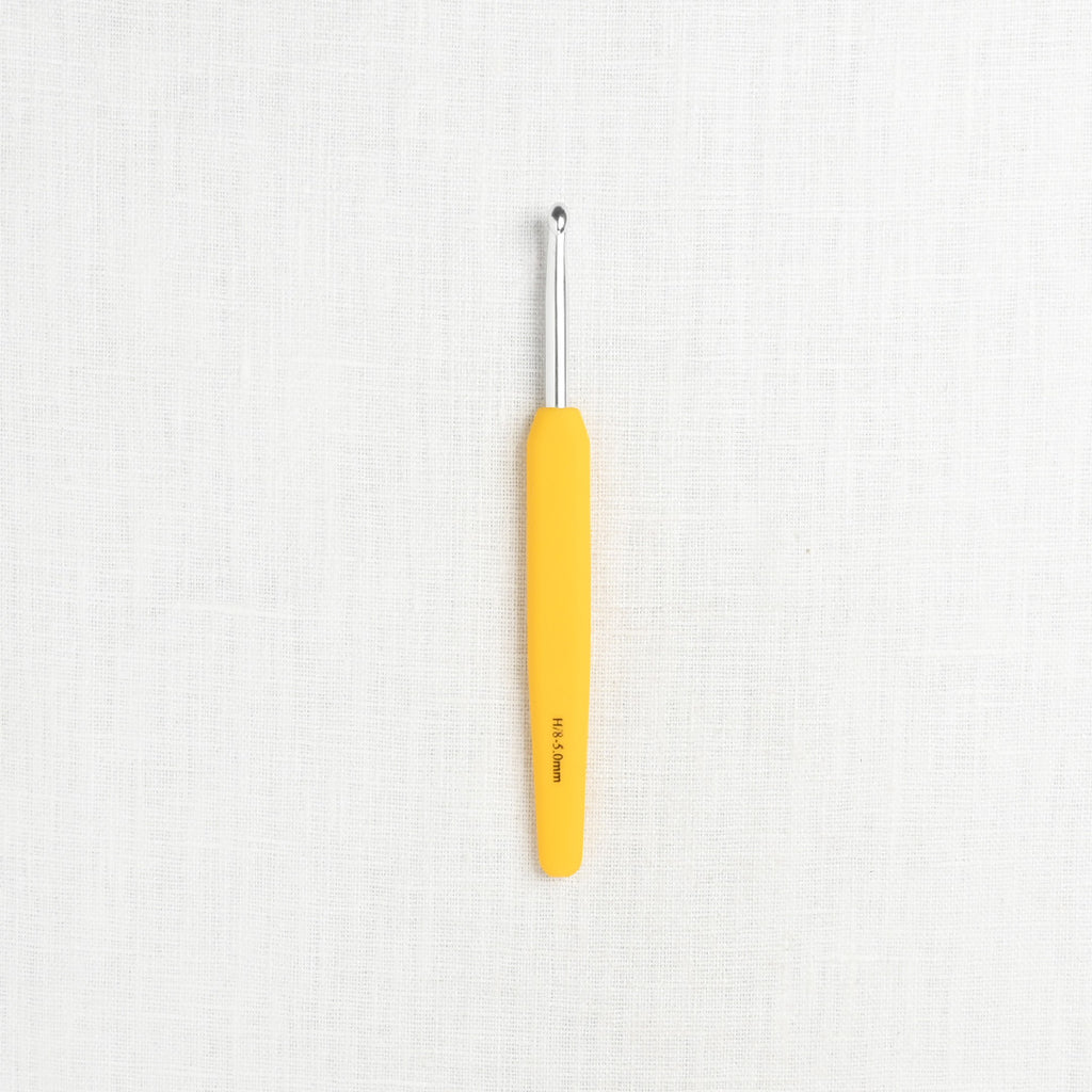 An ergonomic, soft touch grip handle makes hours of crochet go by in a moment, while an aluminum hook offers precision & durability. Each size hook has a different color-coded grip.
