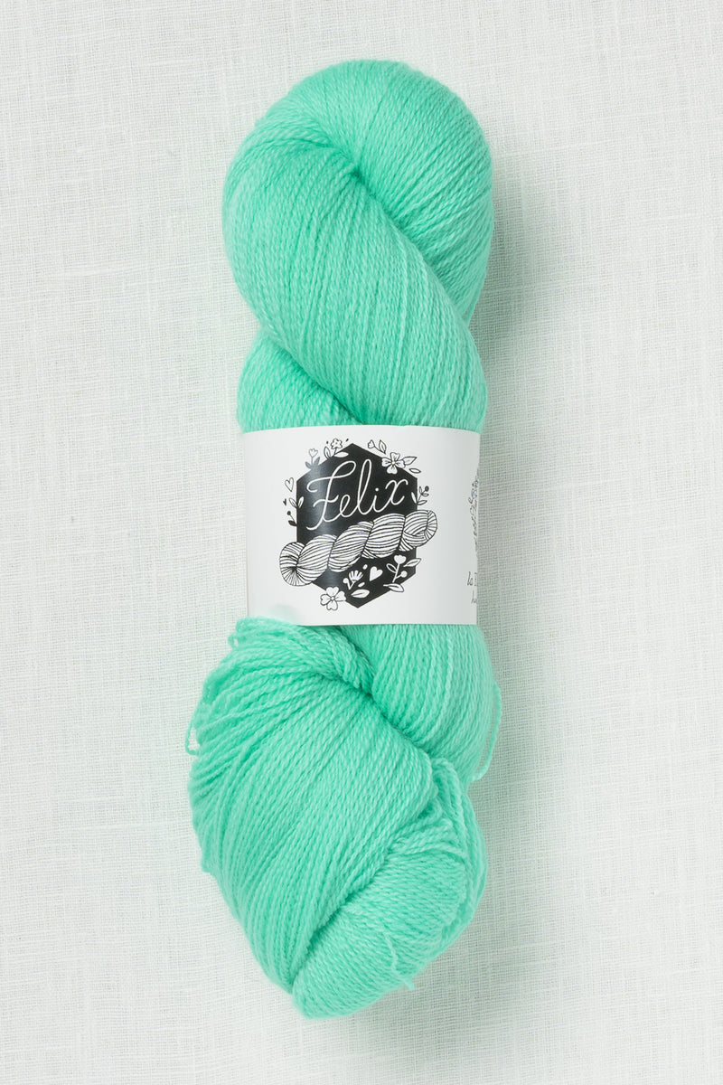 The plump, white, undyed base takes colors beautifully, so each hand-dyed La Bien Aimée colorway is intense & saturated. Felix also has amazing yardage per skein!
