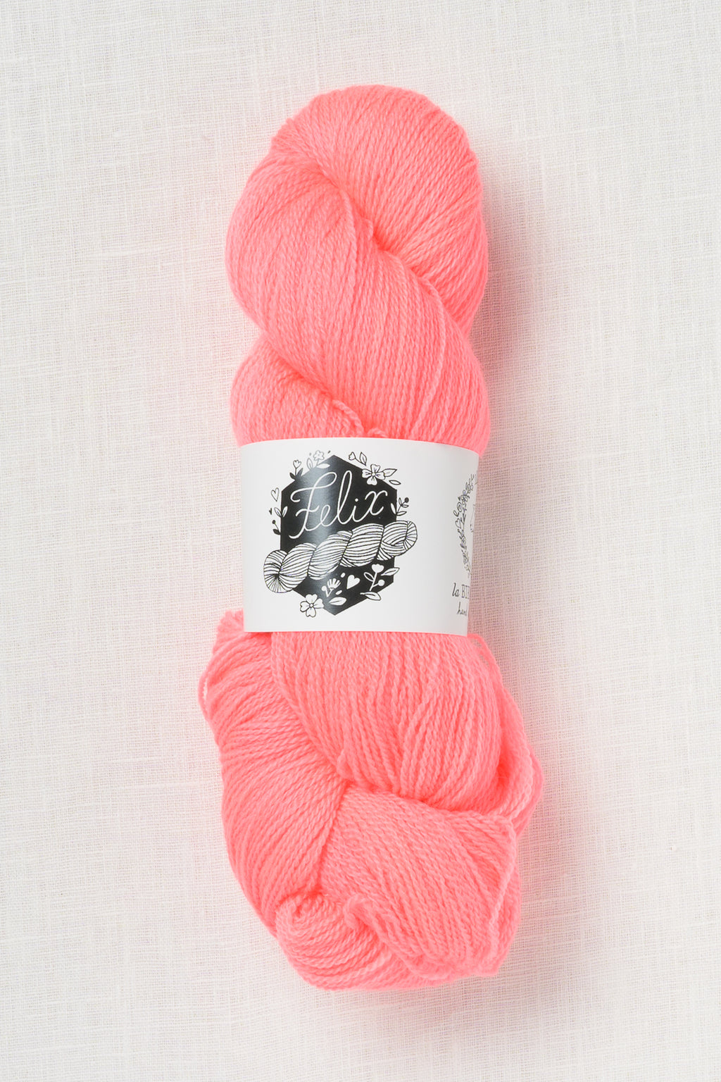 The plump, white, undyed base takes colors beautifully, so each hand-dyed La Bien Aimée colorway is intense & saturated. Felix also has amazing yardage per skein!