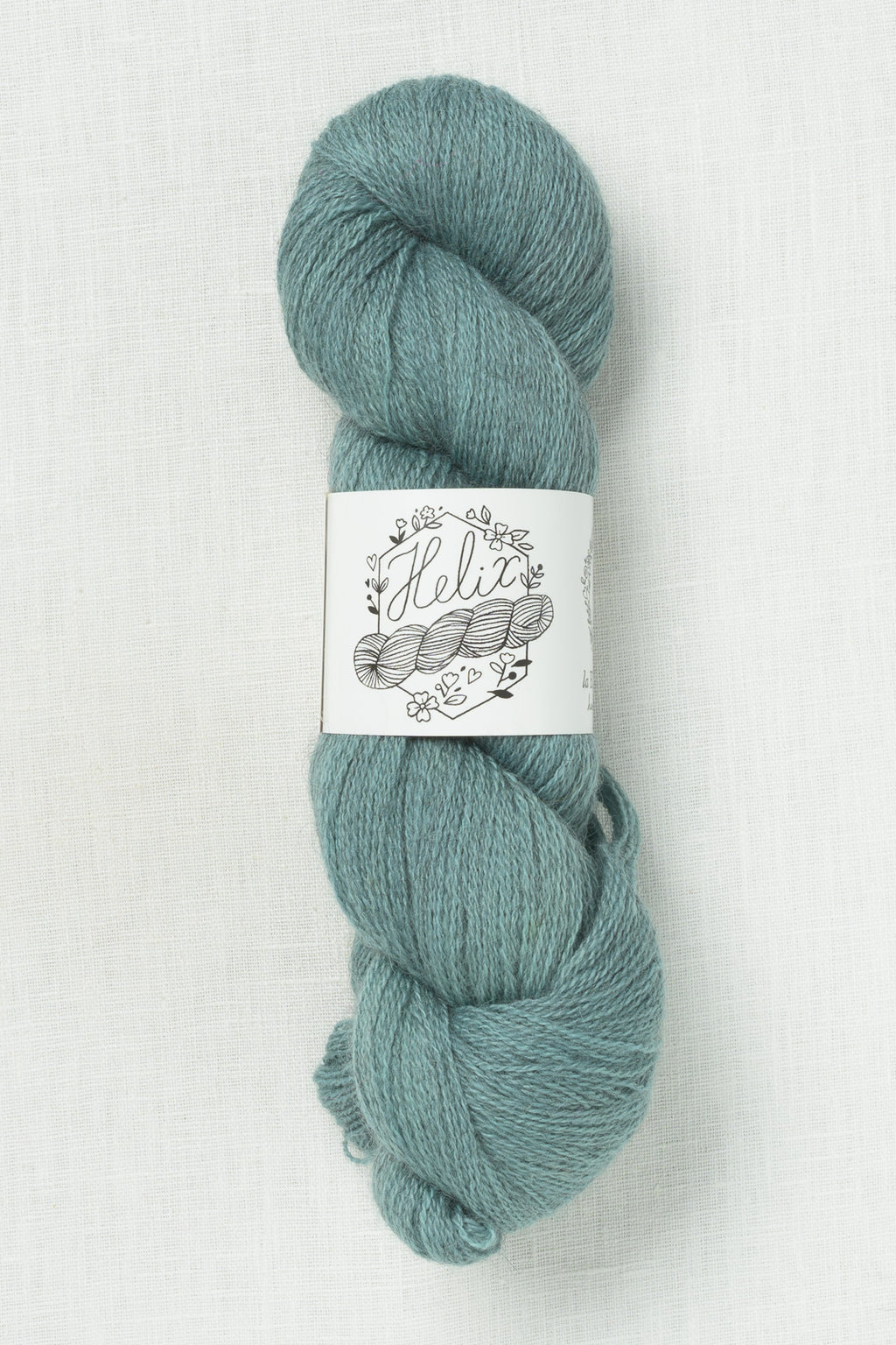 Gotland sheep wool is known for possessing a subtle luster & halo, making it reminiscent of mohair. The light grey Gotland fiber mixed with the bright white Merino gives the Helix yarn a beautiful finish & depth of color.