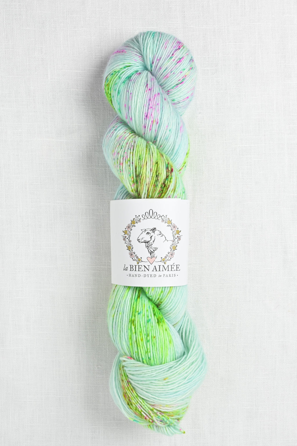Hand dyed in Paris, France, each La Bien Aimée skein is truly a work of art. The unique color combinations are fun to knit with & gorgeous to wear.