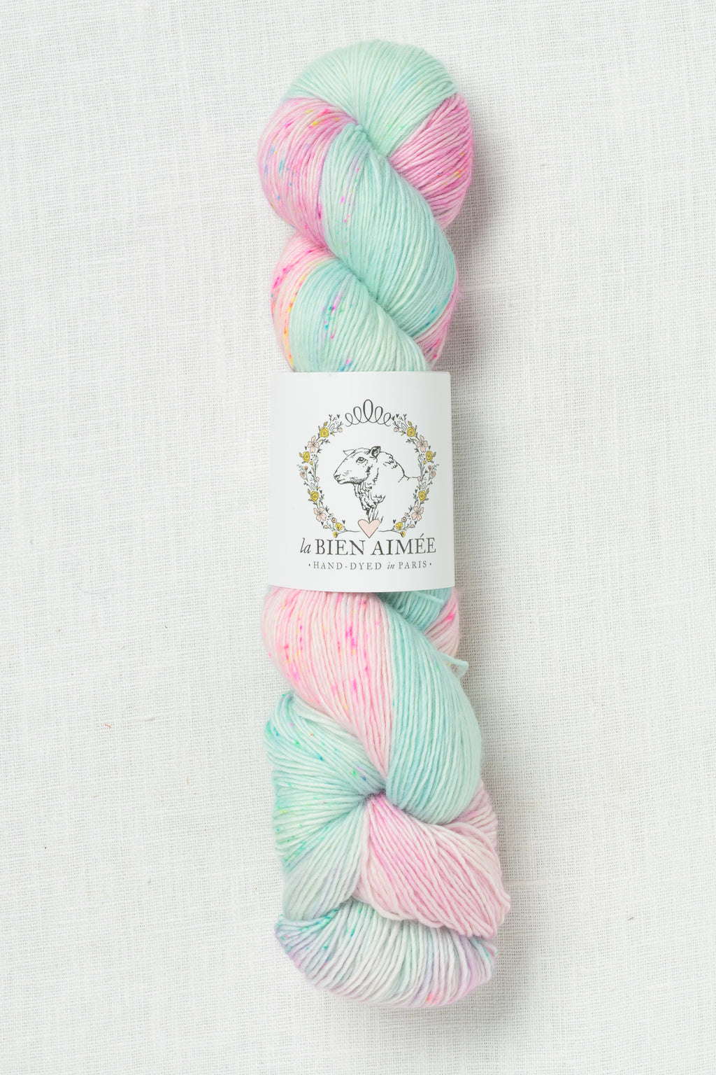 Hand dyed in Paris, France, each La Bien Aimée skein is truly a work of art. The unique color combinations are fun to knit with & gorgeous to wear.