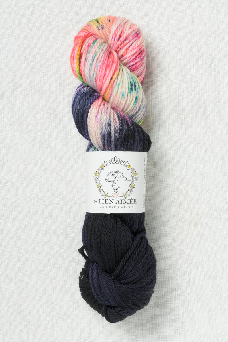 Hand dyed in Paris, France, each La Bien Aimée skein is truly a work of art. The unique color combinations are fun to knit with & gorgeous to wear. This soft, smooshy, plied worsted/aran weight yarn has wonderful stitch definition & a gorgeous hand. Spun with Merino wool, the yarn delivers polished, even stitches & shows off textured stitches beautifully. A wonderful yarn for hats, cowls & cardigans.