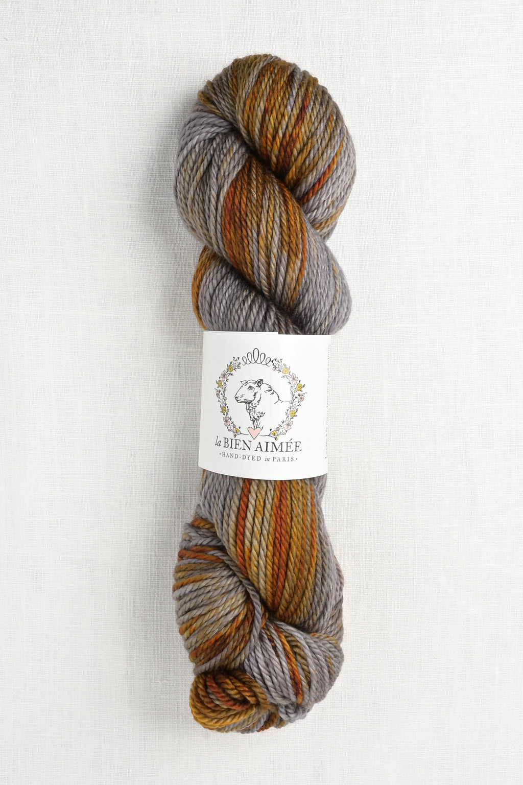 Hand dyed in Paris, France, each La Bien Aimée skein is truly a work of art. The unique color combinations are fun to knit with & gorgeous to wear. This soft, smooshy, plied worsted/aran weight yarn has wonderful stitch definition & a gorgeous hand. Spun with Merino wool, the yarn delivers polished, even stitches & shows off textured stitches beautifully. A wonderful yarn for hats, cowls & cardigans.