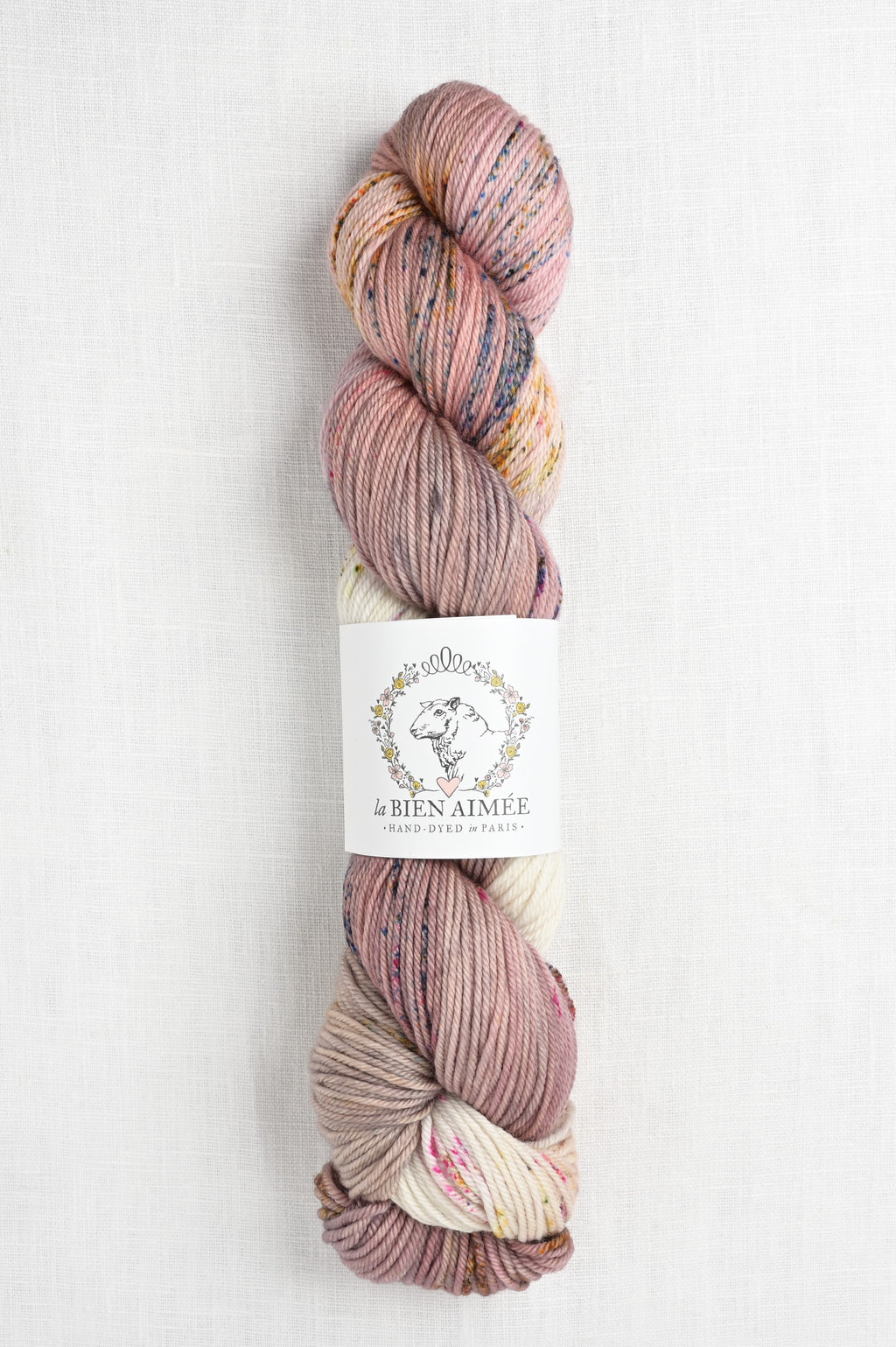 Hand dyed in Paris, France, each La Bien Aimée skein is truly a work of art. The unique color combinations are fun to knit with & gorgeous to wear. This soft, smooshy, plied DK weight has wonderful stitch definition & a gorgeous hand. Spun with Merino wool, the yarn delivers polished, even stitches & shows off textured stitches beautifully. A wonderful yarn for hats, cowls & cardigans.