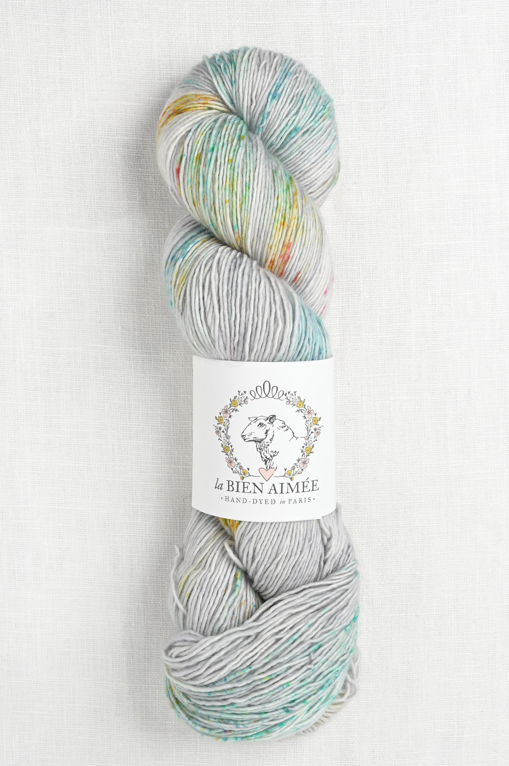 Hand dyed in Paris, France, each La Bien Aimée skein is truly a work of art. The unique color combinations are fun to knit with & gorgeous to wear. Merino Singles have a soft hand & feel lovely against skin. The single-ply, fingering weight yarn has a gentle halo & is ideal for knit shawls, wraps, garments & accessories. The extensive collection of interesting tonals, speckles & variegateds are fun to combine in fades or stripes.