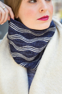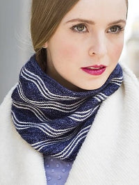 Use fun short rows to create the garter stitch ovals that wave their way across this lovely striped cowl.