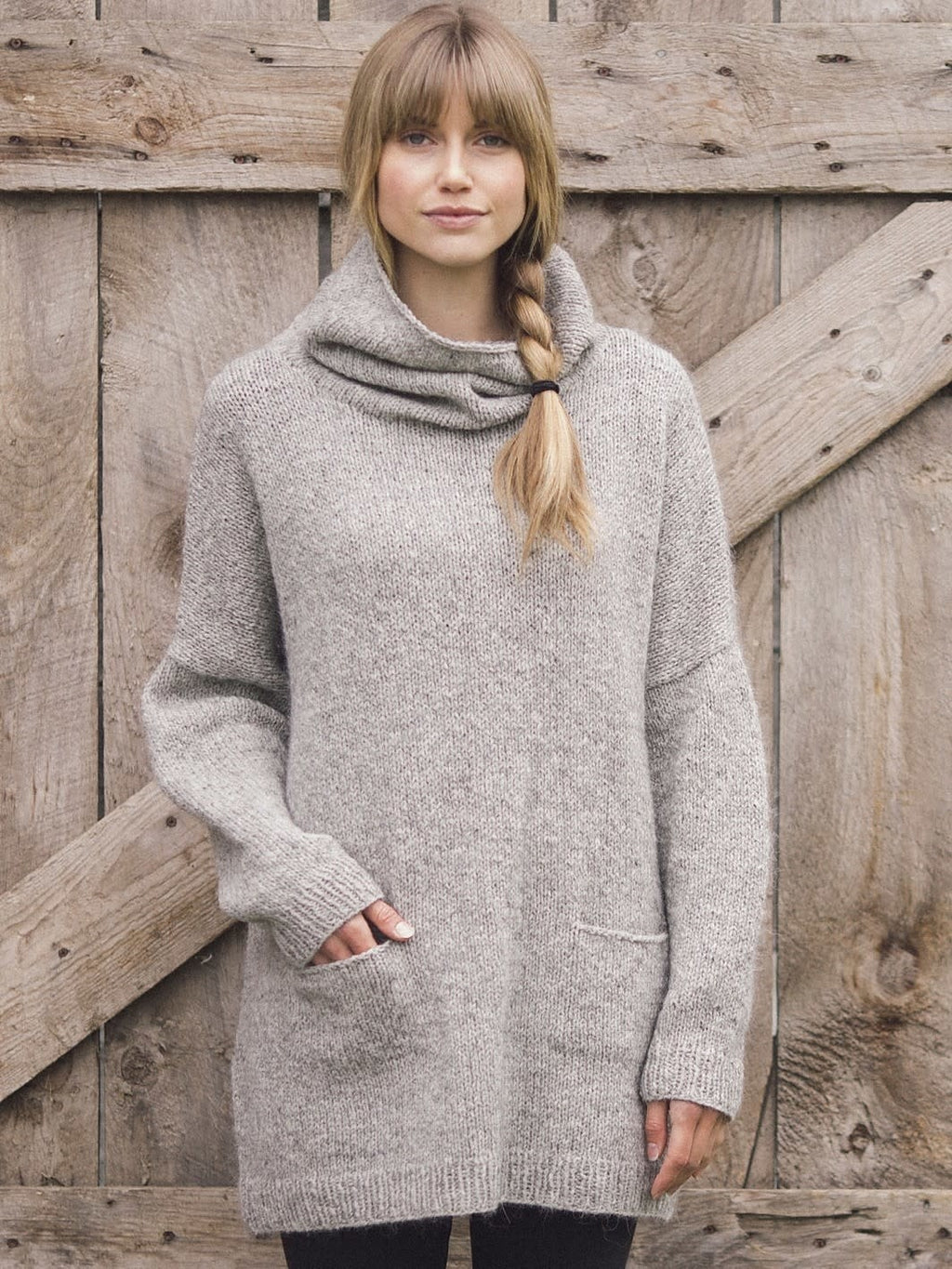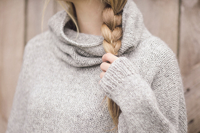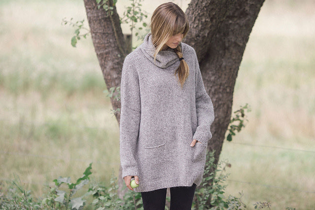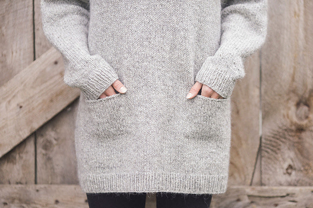Larch is the ultimate in comfort wearing and knitting. Worked in the round from the bottom up, it's very nearly dress length, with deep pockets and an ample cowl neck. The simple details of this piece combined with miles and miles of quick-gauge stockinette makes this a soothing knit for the busy brain.