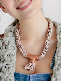 1 skein Wildflower Yarn (yields multiple necklaces). Our sample is in color Petal