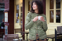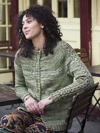 Cardigan is constructed from the neckband down to the hem using circular needles with increasing for the yoke at the placed markers and sleeves worked downwards to